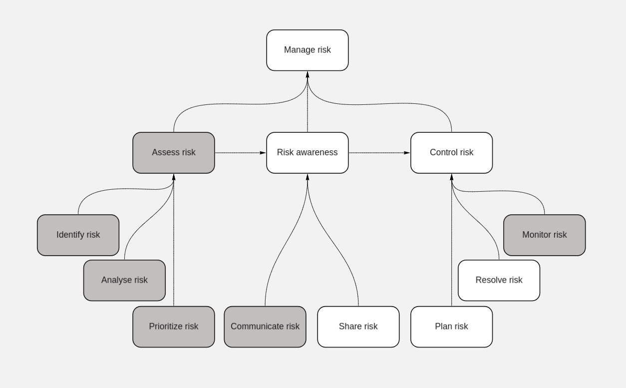 However, identifying risks is only one step in the risk management strategy. From a risk management automation perspective, it is important to characterize what makes up the risk management strategy. Ozaly et al. (2017) show that risk management is based on risk assessment (risk identification / risk analysis / risk prioritization) and on risk control (risk planning / risk resolution / risk monitoring).